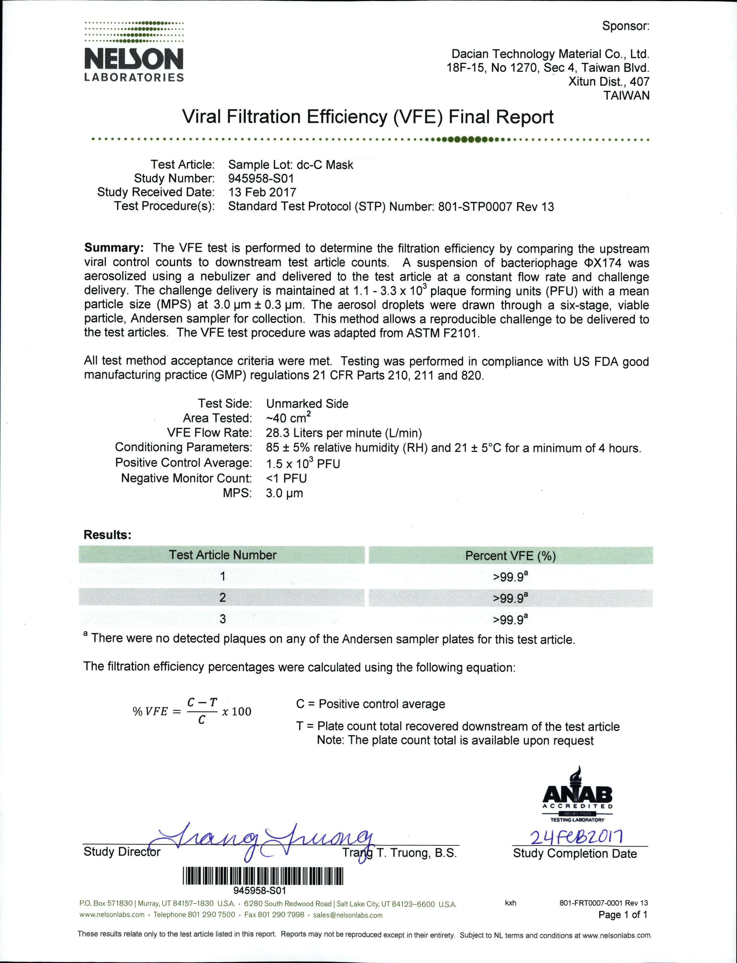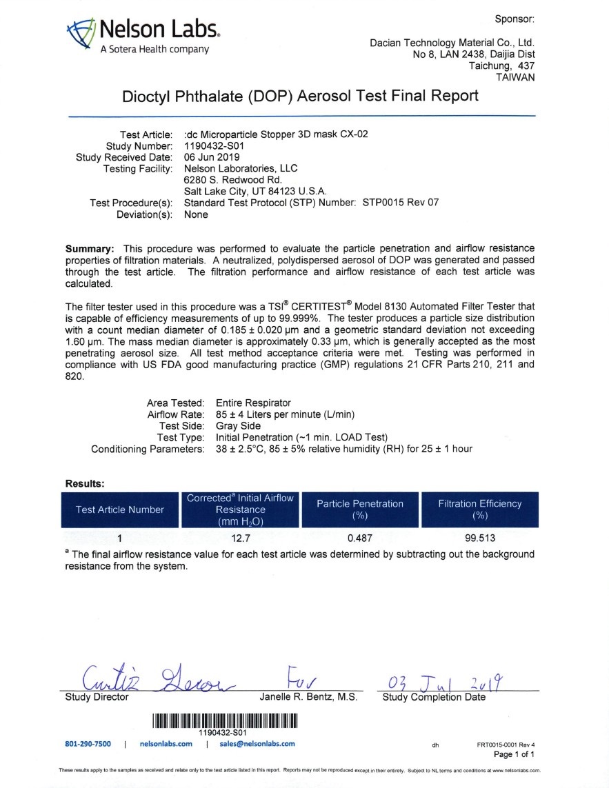 :dc Smog Stopper Filtration Efficiency Test for PM2.5