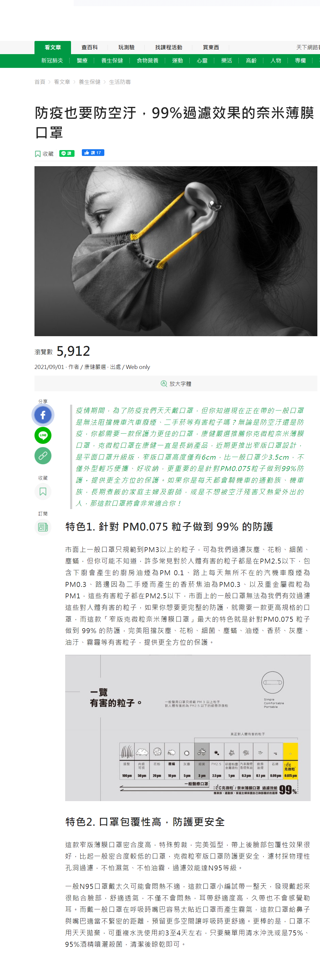 防疫也要防空汙,99%過濾效果的奈米薄膜口罩